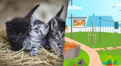 Σωστή απάντηση. Η μία γάτα κρύβεται σε ένα καροτσάκι, η δεύτερη γάτα μυρίζει ένα λουλούδι και η τρίτη γάτα ξεκουράζεται σε μια καρέκλα.