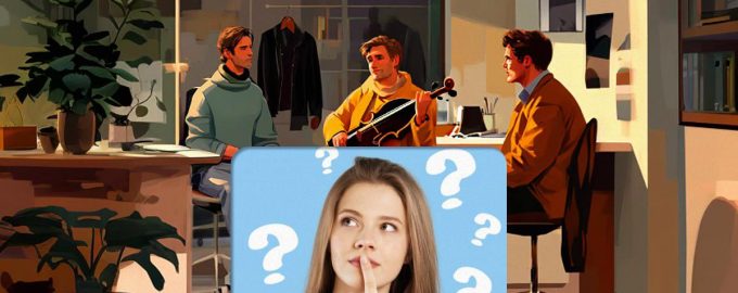 Θυμάστε που είπαμε ότι δύο φίλοι ήταν έτοιμοι να φύγουν όταν είδαν ένα βιολί στο ντουλάπι; Κοιτάξτε την εικόνα – δύο άνδρες κάθονται με τα εξωτερικά τους ρούχα και μόνο ο ένας φοράει πουλόβερ. Αυτός είναι ο ιδιοκτήτης του βιολιού επειδή το βιολί βρισκόταν στην ντουλάπα του.