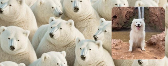 Στην παρακάτω εικόνα θα δείτε αμέσως αρκετές δεκάδες αρκούδες, αλλά θα πρέπει να δουλέψετε για να βρείτε τον σκύλο Samoyed.