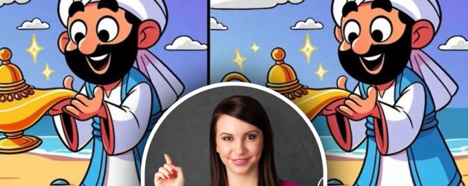 Οι δύο εικόνες δείχνουν έναν άνδρα που κρατά στα χέρια του το λυχνάρι του Αλαντίν. Ωστόσο, οι εικόνες αυτές δεν είναι ακριβώς ίδιες – υπάρχουν μερικές διαφορές μεταξύ τους.