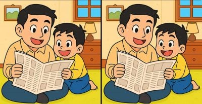 Έτοιμοι λοιπόν για την επόμενη πρόκληση; Ρίξτε μια ματιά στις δύο εικόνες ενός πατέρα και ενός γιου που διαβάζουν την εφημερίδα. Με την πρώτη ματιά οι εικόνες μπορεί να φαίνονται ίδιες, αλλά υπάρχουν 3 διαφορές κρυμμένες πάνω τους και ο στόχος σας είναι να τις βρείτε το συντομότερο δυνατό. Θα μπορέσετε να τις βρείτε όλες σε μόλις 45 δευτερόλεπτα; Προσπαθήστε να λύσετε αυτό το παζλ και δείτε πόσο έξυπνοι είστε!