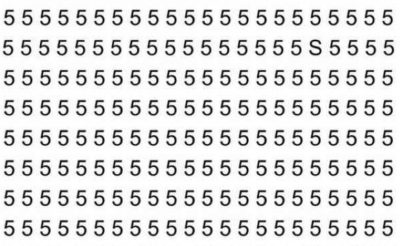 Η εικόνα δείχνει έναν πίνακα με μεγάλο αριθμό ψηφίων 5. Ανάμεσά τους πρέπει να βρείτε το γράμμα S. Όταν υπάρχουν πολλά ψηφία, οπτικά το S μπορεί να μοιάζει με το 5, γι’ αυτό και είναι δύσκολο να το βρείτε.