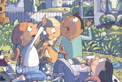 Στην εικόνα βλέπουμε μια οικογένεια που έκανε πικνίκ κάτω από τον έναστρο ουρανό. Μαζί με την οικογένεια απολαμβάνει ένα ευχάριστο κάθισμα και γατούλα. Παιδιά και ενήλικες κοιτάζουν με ενδιαφέρον τα αστέρια στον ουρανό, τρώνε σάντουιτς και συζητούν.