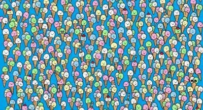 Αυτή η εικόνα δείχνει πολλά παγωτά με διαφορετικές γεύσεις και χρώματα. Ωστόσο, ανάμεσα σε αυτή την παγωμένη λιχουδιά είναι κρυμμένο ένα μόνο γλειφιτζούρι, έξυπνα μεταμφιεσμένο για να ξεγελάσει το ανεκπαίδευτο μάτι.