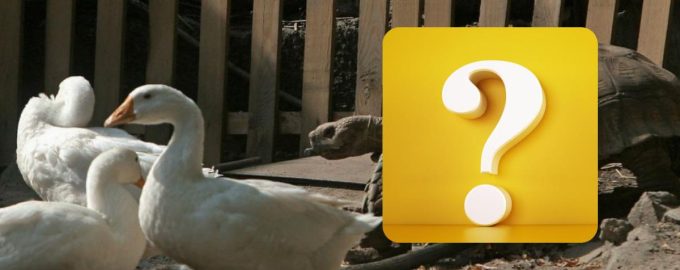 Το κατοικίδιο ζώο κρύφτηκε στην αυλή για να παρακολουθεί ήσυχα τις χήνες και μια μεγάλη χελώνα. Μπορείτε να δείτε ότι τα πουλιά και το ερπετό δεν τον έχουν ακόμα παρατηρήσει. Θα μπορέσετε να το καταλάβετε;