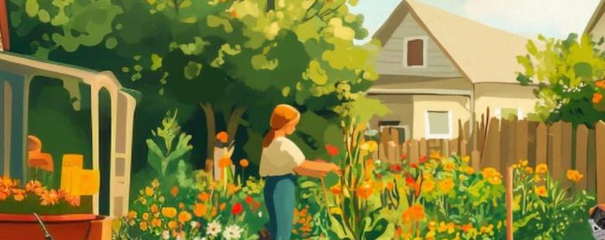 - μια γυναίκα ποτίζει τα λουλούδια με τρίφτη αντί για ποτιστήρι,