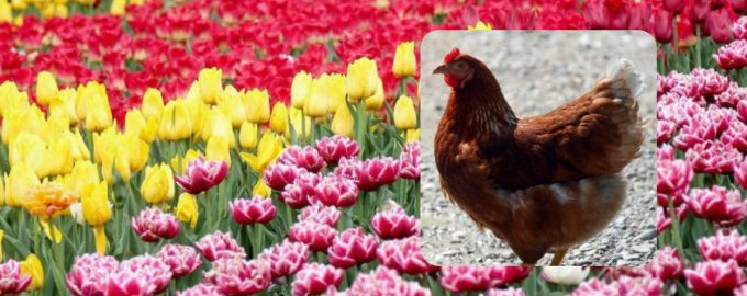 Το κοτόπουλο ήταν ακριβώς μπροστά σας από την αρχή – ανάμεσα στις ροζ τουλίπες. Το έχουμε κυκλώσει με λευκό χρώμα.