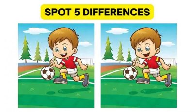Η εικόνα δείχνει ένα αγόρι να παίζει ποδόσφαιρο. Αν και με την πρώτη ματιά οι δύο εικόνες φαίνονται ίδιες, δεν είναι. Υπάρχουν πέντε διαφορές μεταξύ των δύο εικόνων.