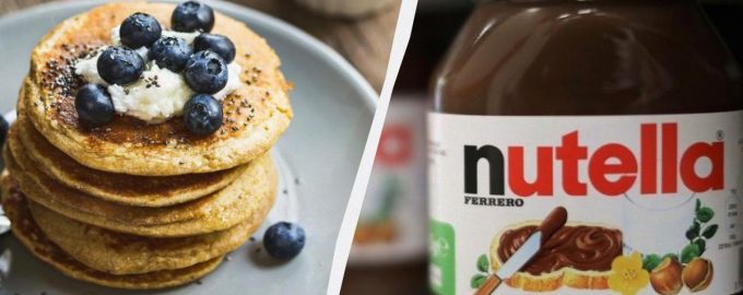 Μπορείτε να βελτιώσετε τις τηγανίτες προσθέτοντας ένα κρυφό στρώμα πάστας φουντουκιού σοκολάτας.