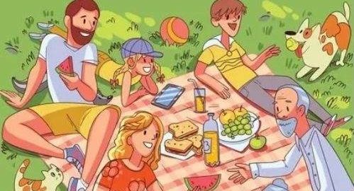 Βλέπουμε μια οικογένεια να διασκεδάζει στη φύση, κάνοντας πικνίκ. Η γιαγιά και ο παππούς, η μαμά και ο μπαμπάς και τα παιδιά συζητούν, απολαμβάνουν τη φύση και καταναλώνουν νόστιμο φαγητό.