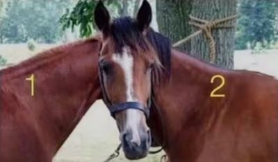 Και τώρα η στιγμή της αλήθειας: η σωστή απάντηση είναι το δεύτερο άλογο στα δεξιά της φωτογραφίας. Το στοιχείο είναι η πιο σκούρα χαίτη του πλάσματος, η οποία το ξεχωρίζει από το σύντροφό του.