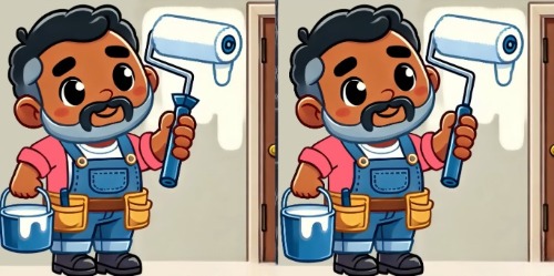Στις εικόνες βλέπουμε έναν εργάτη να βάφει έναν τοίχο. Με την πρώτη ματιά, μπορεί να φαίνεται ότι η εικόνα που βλέπουμε και στις δύο εικόνες είναι απολύτως πανομοιότυπη. Αλλά δεν είναι όλα τόσο απλά – κάπου κρύβονται μερικές λεπτομέρειες που είναι διαφορετικές. Και είναι αυτές που θα πρέπει να βρείτε.