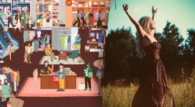 Κοιτάξτε προσεκτικά την εικόνα. Θα δείτε μια σκηνή που απεικονίζει αρκετούς αγοραστές να περπατούν σε ένα κατάστημα ρούχων κατά τη διάρκεια μιας μεγάλης εκπτωτικής αγοράς. Μπορείτε όμως να βρείτε πέντε φορέματα στην εικόνα;