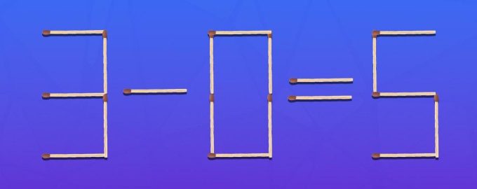 Μπορούσατε λοιπόν να προσθέσετε από ένα σπίρτο στο 3 και στο 5, ώστε να σχηματίσουν τον αριθμό 9. Τότε θα είχατε την ισότητα 9+0=9, η οποία είναι μαθηματικά σωστή.