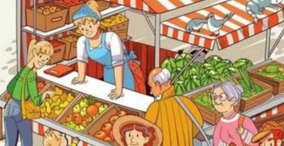 Η εικόνα δείχνει μια αγορά λαχανικών με πολύ κόσμο. Κάποιοι από αυτούς επιλέγουν φρούτα, άλλοι απλώς περπατούν και ελέγχουν τις τιμές. Κάπου είναι κρυμμένο ένα παγωτό.